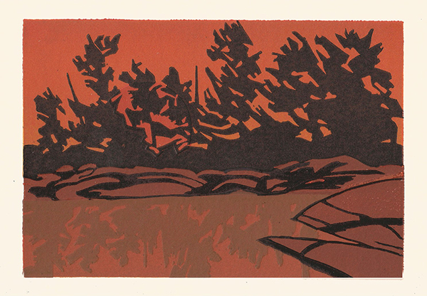 This is from a sketch I did in the Holland Marsh area many years ago. I’d done a print but didn’t like it so I put it away. I brought it out a few weeks ago and changed it from day to night and…voila!…I liked it.