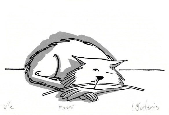 A short break from engraving the six plates for my next print. I engraved this from a decades old sketch of a cat who had moved in, claimed the couch as his own and earned his keep catching mice. He gave me a mouse once, the only mouse I’ve ever received as a gift.