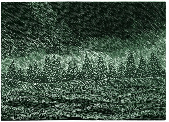 A favourite Christmas print, my youngest daughter’s first limited edition. She drew, dad engraved and we pulled a proof. She coloured it in, dad engraved plates for the colours then we printed.
