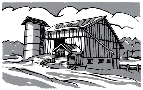 I editioned this years ago but something about it always bugged me so it was relegated to a drawer. Two weeks ago I sliced a lot of roadway from the bottom of the plate and all of a sudden the eye was drawn to the barn, not the road!